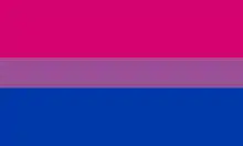 Загальним символом бісексуальної спільноти є бісексуальний прапор гордости, який має темно-рожеву смужку у верхній частині для гомосексуальности, синю внизу для гетеросексуальности та фіолетову — суміш рожевого та синього — посередині, щоб зобразити бісексуальність.[84]
