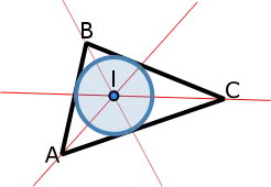 Внутрішні бісектриси кута трикутника одночасно перетинаються в точці, яка називається стимулом (центром вписаного кола) трикутника, як видно на схемі праворуч.