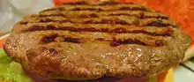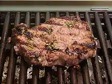 ![]() Біфштекс з ненарубленого маринованого м'яса, посипаний зеленню, приготований «з кров'ю» на грилі. | |