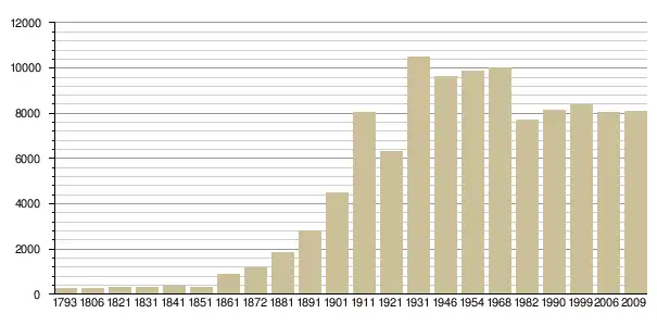 Динаміка населення (base Cassini de l'EHESS pour les nombres retenus jusque 1962[3], base Insee à partir de 1968 (population sans doubles comptes puis population municipale à partir de 2006)[4] · [5] ):