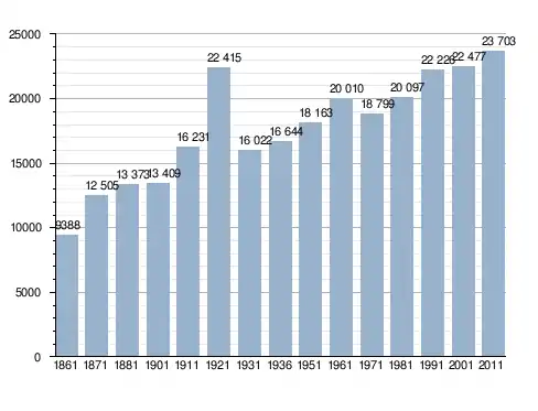 Станом на 31 грудня 2014 року в муніципалітеті офіційно проживало 500 іноземців з 22 країн, серед них 348 громадян країн Євросоюзу та 1 громадянин України.[4]