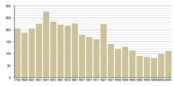 Динаміка населення (base Cassini de l'EHESS pour les nombres retenus jusque 1962[3], base Insee à partir de 1968 (population sans doubles comptes puis population municipale à partir de 2006)[4] · [5] ):