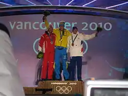![]() Б'єрн Феррі (в центрі) на олімпійському п'єдесталі Ванкувера | |||