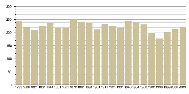 Динаміка населення (base Cassini de l'EHESS pour les nombres retenus jusque 1962[3], base Insee à partir de 1968 (population sans doubles comptes puis population municipale à partir de 2006)[4] · [5] ):