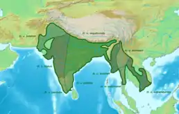 - D. v. kinneari Baker, ECS, 1922 (центральна М'янма, південний Китай, північно-західний Таїланд)[11];