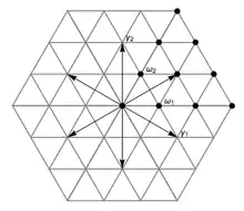 де є простими коренями. Елемент є цілочисловим, якщо і тільки якщо він є цілочисловою комбінацією фундаментальних ваг.[3] Множина всіх -цілочислових ваг є ґраткою у що називається ваговою ґраткою для і позначається .