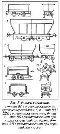 Вагонетки з відкидним бортом місткістю 1,6; 2,5; 4,0 м³ використовують на діючих шахтах для транспортування руди та породи підземними виробками.
