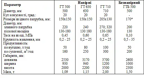 Гідроциклони випускають в комплекті з допоміжним обладнанням, необхідним для роботи важкосередовищних гідроциклонних установок. В комплект крім гідроциклонів входять: бак регулюючий, змішувач, дугові грохоти, роздільник суспензії, резервуари для суспензії.