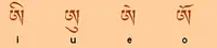 | ཨི i | ཨུ u | ཨེ e | ཨོ o |