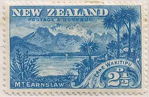 ![]() Марка Нової Зеландії 2 пенси, синього кольору, |