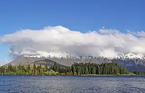 ![]() Озеро Вакатіпу на фоні гір Ремаркаблес. |