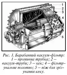 Процес фільтрування на вакуум-фільтрах (рис. 1) складається з ряду операцій, послідовність цих операцій така: