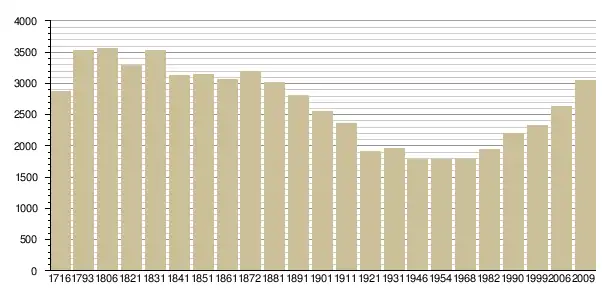 Динаміка населення (Baratier, Duby & Hildesheimer pour l’Ancien Régime (sauf mention contraire) ; Insee[3], EHESS[4] pour les chiffres issus des recensements légaux ):