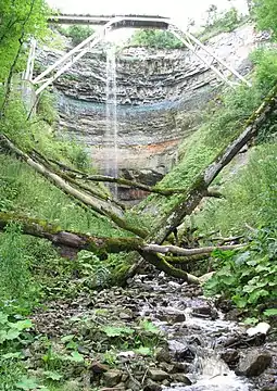 Розташований в повіті Іда-Вірумаа неподалік від міста Кохтла-Ярве. Водоспад був створений штучною протокою, організованою для відведення надлишків води з полів. Вода падає з глінта, що складається з пісковика і древніх силурійських вапняків. У холодні зими водоспад замерзає.