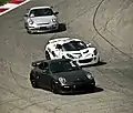 Чорний Porsche 997 GT2, сірий 997 GT3 RS і білий Lotus Exige на трасі під час гонок у 2011 році