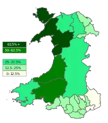![]() Кількість мовців валлійською мовою у різних регіонах Уельсу | |