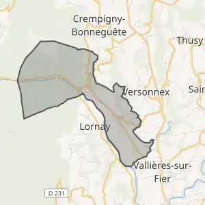 Муніципалітет був розташований на відстані[2] близько 430 км на південний схід від Парижа, 85 км на схід від Ліона, 18 км на захід від Аннесі.