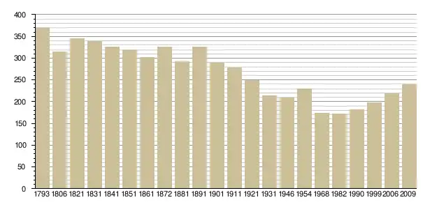 Динаміка населення (base Cassini de l'EHESS pour les nombres retenus jusque 1962[3], base Insee à partir de 1968 (population sans doubles comptes puis population municipale à partir de 2006)[4] · [5] ):