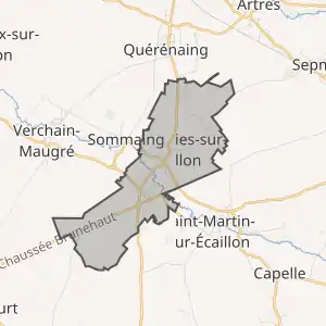 Муніципалітет розташований на відстані[2] близько 180 км на північний схід від Парижа, 55 км на південний схід від Лілля.