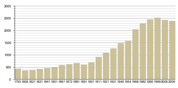 Динаміка населення (base Cassini de l'EHESS pour les nombres retenus jusque 1962[3], base Insee à partir de 1968 (population sans doubles comptes puis population municipale à partir de 2006)[4] · [5] ):