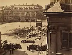 Але найдраматичніші події чекали на колону в дні Паризької комуни в 1871 році. Відомий художник Гюстав Курбе ще з моменту падіння Другої імперії у вересні 1870 року висловлювався за знесення колони, що створює «враження кривавого струмка у мирному саду», і за те, щоб перенести цей пам'ятник на еспланаду Дому інвалідів і встановити на малолюдному місці, що відвідується переважно військовиками. Під час Комуни Курбе став комісаром з культури і був близький до здійснення своєї мрії. Але громадська думка Парижа вимагала повного знищення колони.
