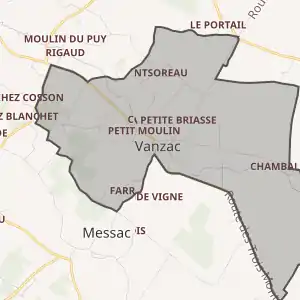 - Розташування муніципалітету Ванзак на мапі Франції та сусідні муніципалітети