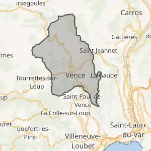 - Розташування муніципалітету Ванс на мапі Франції та сусідні муніципалітети