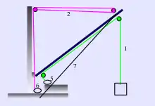 Нок стріли кріпиться до щогли ланцюговим (рідко тросовим) топенантом, за допомогою якого нок утримується на необхідній висоті. Часто замість ланцюгового трапляється найпростіший топенант, що складається з дротяного шкентеля відповідної товщини і талів. Для горизонтального переміщення стріли до її нока також кріпляться дві бічні відтяжки, споряджені знизу талями. При шпорі, середині і при ноку стріли укріпляються блоки, через які проходить дротяний трос або дрібноланковий ланцюг — вантажний шкентель. Цей трос на одному кінці має гак, а іншим кінцем намотується на вал лебідки. Діючи лебідкою, підіймають чи опускають кінець з гаком (колись замість лебідок з механічним приводом вантажі підіймали ручними талями і кабестанами). Тимчасова стріла може виготовлятися з двох товстих жердин, з'єднаних кінцями у вигляді двоноги.