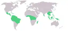 Ваніль вирощують на плантаціях Мексики у Бразилії, Парагваї, на Флориді у США, а також на Яві, Реюньйоні, Таїті, Цейлоні , Західній Африці, та інших тропічних регіонах (дивись мапу праворуч).