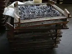 Технологія виробництва даної прянощі досить складна. На першому етапі незрілі плоди збирають та занурюють на 20 секунд у гарячу воду (80-85 °C), здійснюючи таким чином своєрідне короткочасне бланшування. Потім відбувається ферментація плодів при температурі 60 °C протягом тижня. Тільки після ферментації ваніль набуває характерного аромату та коричневого кольору. Після цього стручки протягом декількох місяців сушать у затінку на відкритому повітрі. Після появи на стручках білого нальоту вважається, що ваніль готова до вживання.