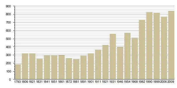 Динаміка населення (EHESS[4] і INSEE[5] ):