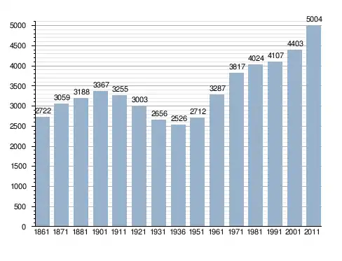 Станом на 31 грудня 2014 року в муніципалітеті офіційно проживали 342 іноземці з 31 країни, серед них 70 громадян країн Євросоюзу та 15 громадян України.[4]