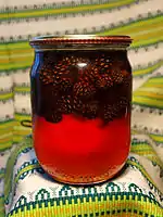 З готового варення потрібно знімати пінку і гарячим розливати в ошпарені гарячі банки, які після цього закривають і перевертають догори дном для охолодження.