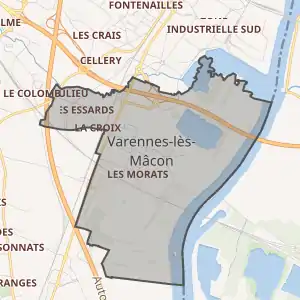 - Розташування муніципалітету Варенн-ле-Макон на мапі Франції та сусідні муніципалітети