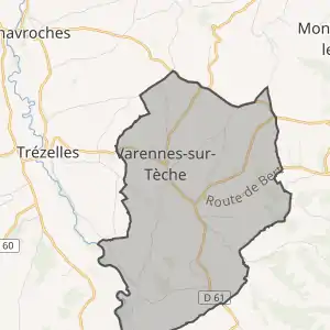 - Розташування муніципалітету Варенн-сюр-Теш на мапі Франції та сусідні муніципалітети