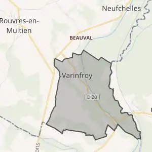- Розташування муніципалітету Варенфруа на мапі Франції та сусідні муніципалітети