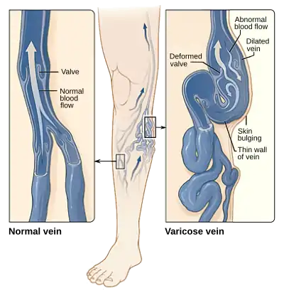 Варикоз — серйозне захворювання, при якому вени втрачають свою еластичність, розтягуються і розширюються. Цьому сприяють природжена слабкість венозних стінок і неповноцінність їх клапанів, що приводить до ускладнення течії крові й підвищення внутрішньосудинного тиску. Венозні клапани відіграють роль замкі́в: коли кров проходить через клапани, замо́к замикається і не пропускає кров назад. Тільки-но ця система перестає спрацьовувати, кров починає вільно циркулювати вниз і застоюється в ногах.