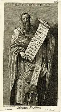Васи́лій Вели́кий (грец. Μέγας Βασίλειος, 329, Кесарія Каппадокійська, нині м. Кайсері, Туреччина — 379, Кесарія Каппадокійська) — архієпископ Кесарії Каппадокійської в Малій Азії, визначний церковний діяч, один із Отців Церкви, християнський святий. Йому приписуються винахід іконостасу та складання літургії Василя Великого.