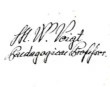 Фойґт Міхал Вацлав (чеськ. Michal Václav Voigt, пол. Michał Wacław Voigt, нім. Michael Wenzel Voigt; *5 жовтня 1765, м.Фрідлант, нині Ліберецького краю, Чехія — †24 вересня 1830, Оломоуц, тепер Чехія) — філософ, педагог і бібліограф, професор Краківського (1804-1809) і Львівського (1810-1813) університетів. Перший професор педагогіки у вказаних університетах. Автор праць з філософії Арістотеля та І.Канта. Писав німецькою мовою.