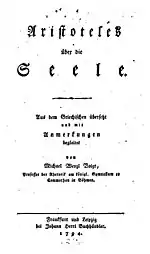 - Aristoteles über vie Seele, aus dem Griechischen ubersetzt und mit Anmerkungen begleitet. Frankfurt und Leipzig. 1784.