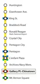 | 15 грудня 1976 | Gallery Pl-Chinatown відкривається між існуючими станціями | 6 | 7,4 |
