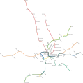 Всього 91 станцій, загальна довжина — 189,6 км[3]. Перший проект, який передбачав будівництво 83 станцій і шляхів протяжністю 165,5 км, був завершений 13 січня 2001 року. Під землею пролягає 80 км залізниць, а також 47 станцій з 86, на поверхні землі — понад 74 км та 33 станції, над землею — понад 14 км та 6 станцій.[3]