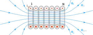 | Магнітний потік вздовж осі довгої тонкої циліндричної котушки | ||||