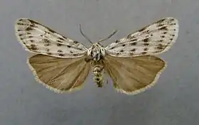 Розмах крил 30-35 мм. Передні крила білі з численними чорними цятками або без них. Задні крила жовтувато-білі або сірі.
