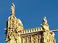Статуя Святого Якова прикрашає дзвіницю на самому її верху, де по кутах стоять скульптури ангела, орла, бика та лева — символи чотирьох євангелістів.