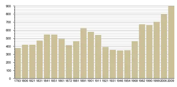 Динаміка населення (INSEE[4] і Cassini[5] ):