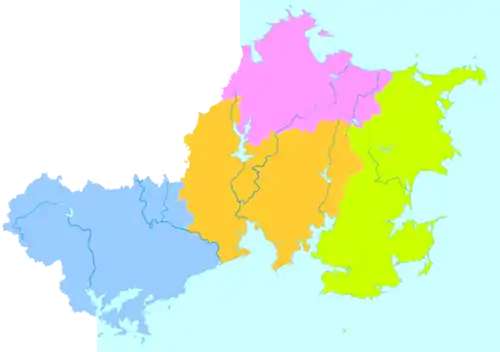 | Міський повіт | Жунчен | 荣成市 | 1392 | 668 000 |