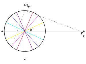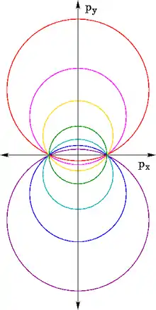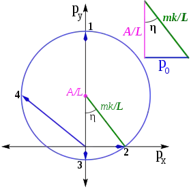 Іншими словами, вектор імпульсу обмежений колом радіуса , центр якого розташований в точці з координатами . Ексцентриситет відповідає косинусу кута , показаного на рис. 2. Для спрощення можна ввести змінну . Коловий годограф корисний для опису симетрії задачі Кеплера.