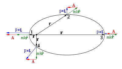 Із центральності сили випливає, що вектор кутового моменту також зберігається і визначає площину, в якій частинка здійснює рух. Вектор Лапласа — Рунге — Ленца перпендикулярний до вектора кутового моменту і, таким чином, розташовується у площині орбіти. Рівняння вірне, тому що вектори і перпендикулярні до .