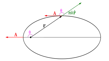 де — період орбітального руху і рівність використовувалася для того, щоб перетворити інтеграл по часу в інтеграл по куту (рис. 5). Наприклад, беручи до уваги ефекти загальної теорії відносності, приходимо до добавки, яка на відміну від звичайної гравітаційної сили Ньютона залежить обернено пропорційно від куба відстані[25]: